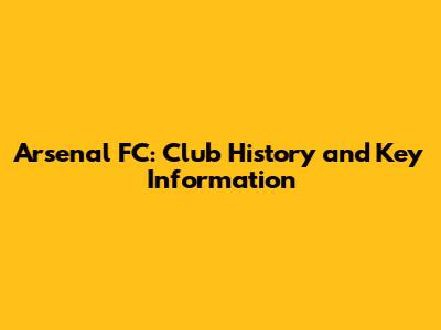 Arsenal FC: Club History And Key Information