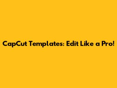 CapCut Templates: Edit Like A Pro!