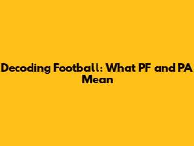Decoding Football: What PF And PA Mean