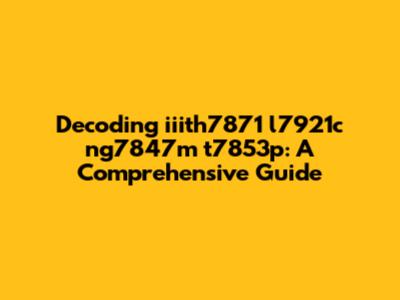 Decoding Iiith7871 L7921c Ng7847m T7853p: A Comprehensive Guide