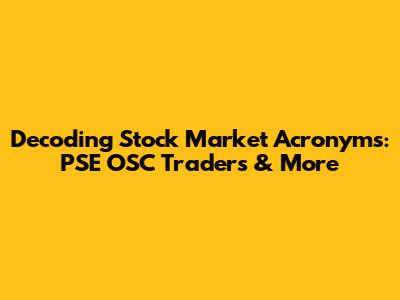 Decoding Stock Market Acronyms: PSE OSC Traders & More