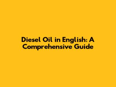 Diesel Oil In English: A Comprehensive Guide