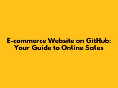 E-commerce Website On GitHub: Your Guide To Online Sales