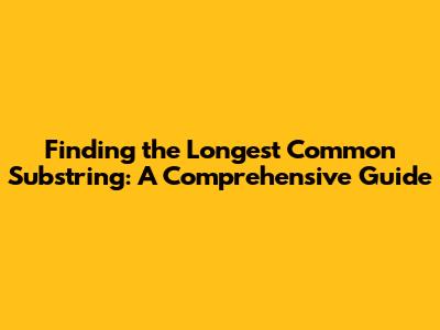 Finding The Longest Common Substring: A Comprehensive Guide