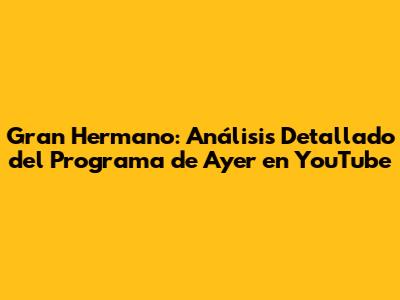 Palabras Clave: Gran Hermano, YouTube, programa de ayer, resumen, análisis, nominaciones, estrategias, alianzas, reality show, televisión, fanáticos, comunidad.