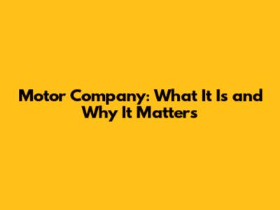 Motor Company: What It Is And Why It Matters