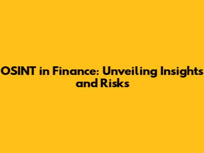 OSINT In Finance: Unveiling Insights And Risks