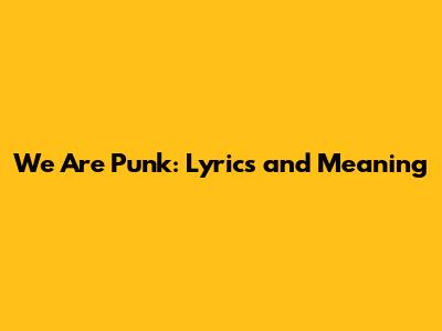 We Are Punk: Lyrics And Meaning